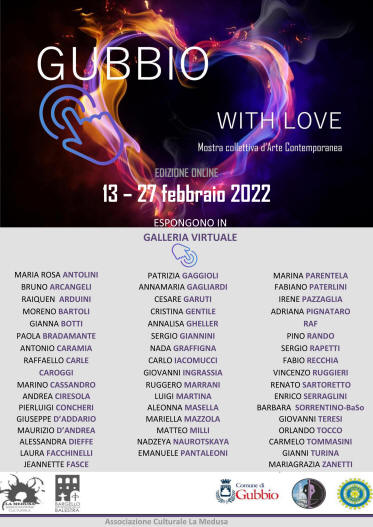 La mostra collettiva “Gubbio with love”, organizzata dall’Associazione Culturale La Medusa di Gubbio, si è svolta dal 13 al 27 febbraio 2022 in edizione online.