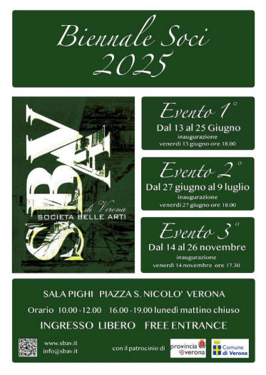 La tradizionale Biennale dei Soci organizzata dalla Società Belle Arti Verona si è svolta, nel 2025, in tre fasi, sempre nella Sala Pighi di Verona. La prima mostra si è svolta dal 13 al 25 giugno.
